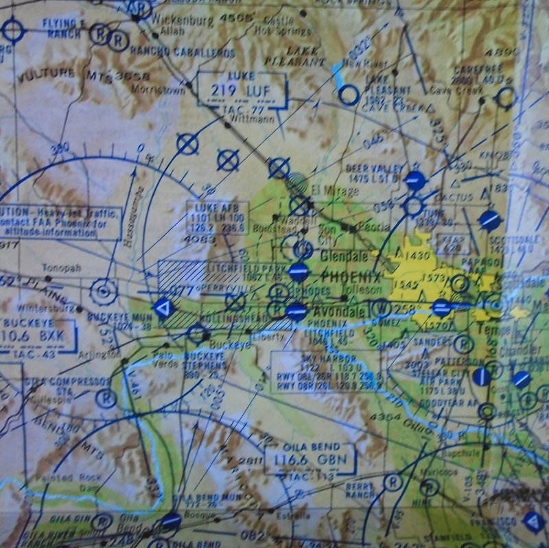 Arizona Aeronautical Chart Map with Airports, Mines, Flight Paths, Railroads, other landmarks. Dated 1968, like new.