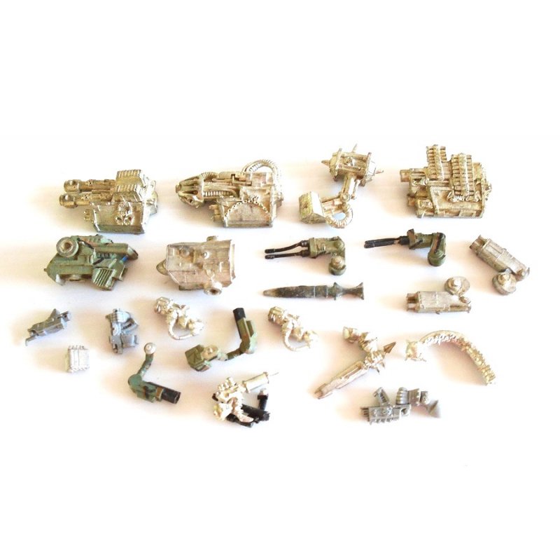 Some of what is included here are heavy duty guns, there are hands holding small hand guns, machine guns, and other guns, there's a sword, and other weapons that I don't know what they are. All together, there are 23 various weapons. They are all metal and unpainted.