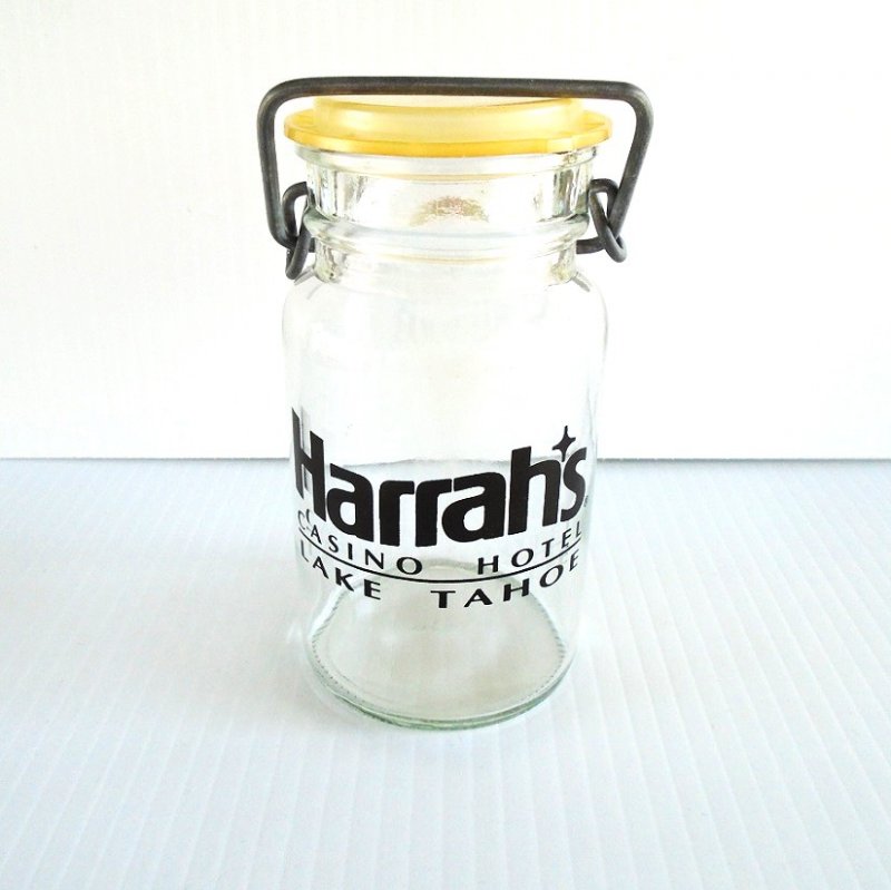 This jar is from Harrah's Casino & Hotel in Lake Tahoe Nevada. I purchased it at an estate sale so I don't know its original purpose. Maybe it was sold in the gift shop with candy inside, maybe it originally had bath salts inside, there are any number of possibilities.