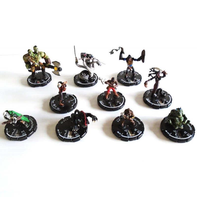 Offered in this listing are a quantity of 10 fighter figurines. All are standing on a base that is a dial with numbers. I'm not sure if they are for Dungeons and Dragons, Mage Knight, or if they are part of the Warhammer game. They are all marked on the bottom Wizkids. 8 have a date of 2002 and 2 have a date of 2003. Of the 2 that are dated 2003, one also says #077 Dagon, and the other says #079 Pearl. All 10 figurines stand between one to two inches tall. They have been painted, or partially painted. They are plastic.